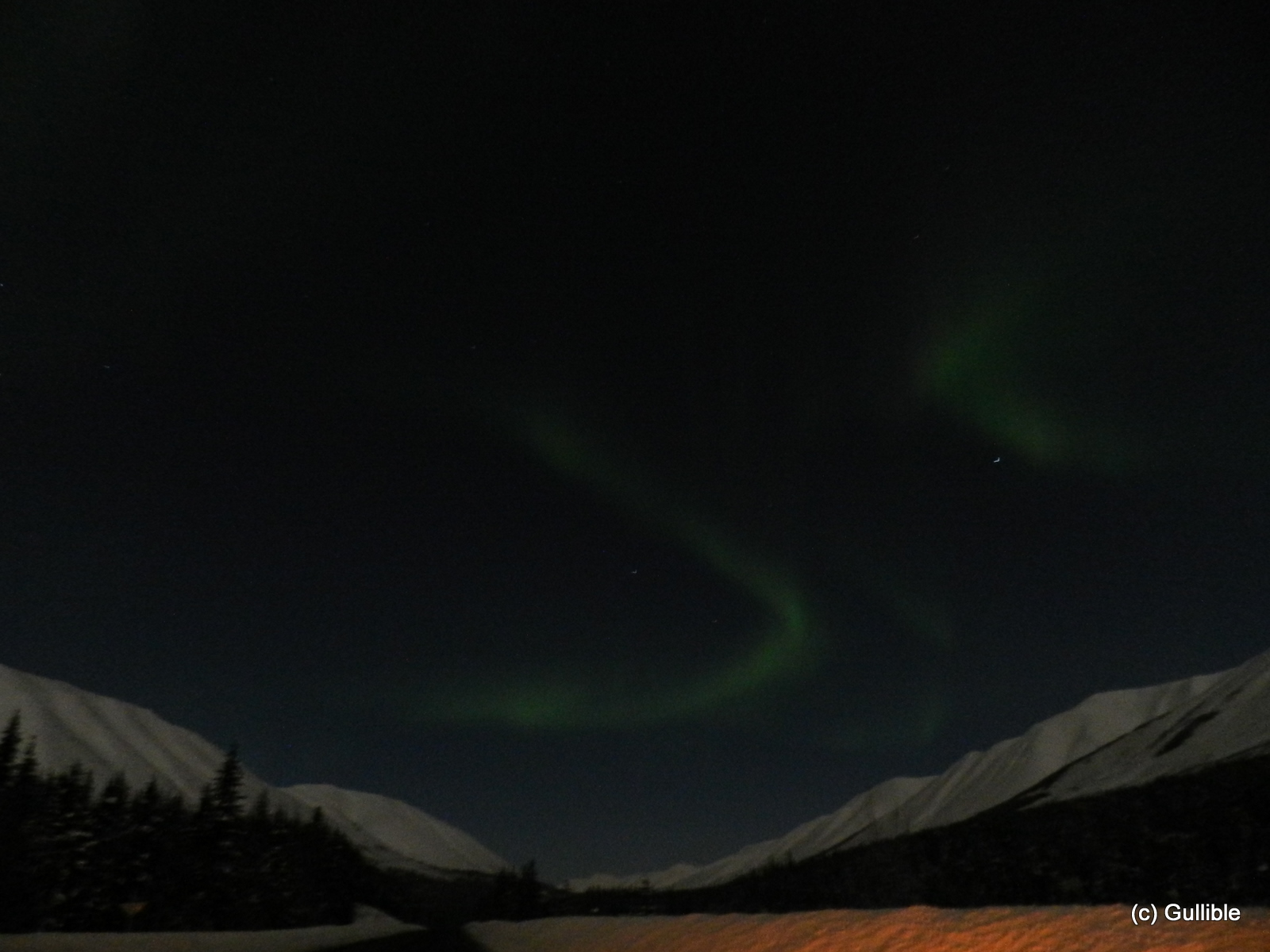 Three miles farther north, I parked right on the highway at the Mile 40 signpost, leaving only my parking lights on. By then it was 1 am and I saw only three vehicles in an hour’s time, but overhead, an almost constant choreography played across the sky.
