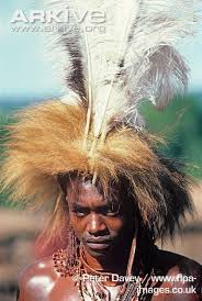 | Maasai face ruff made from ostrich feathers. Not my photo. |