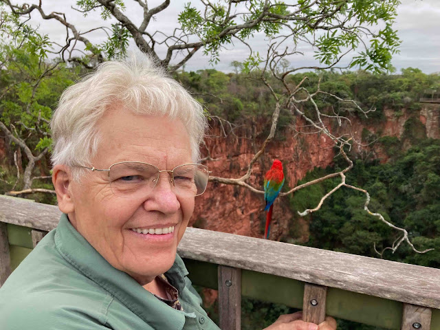 | Hanging on to my Tilly hat so it doesn't blow away as the boat goes rapidly down the Cuiaba river. |